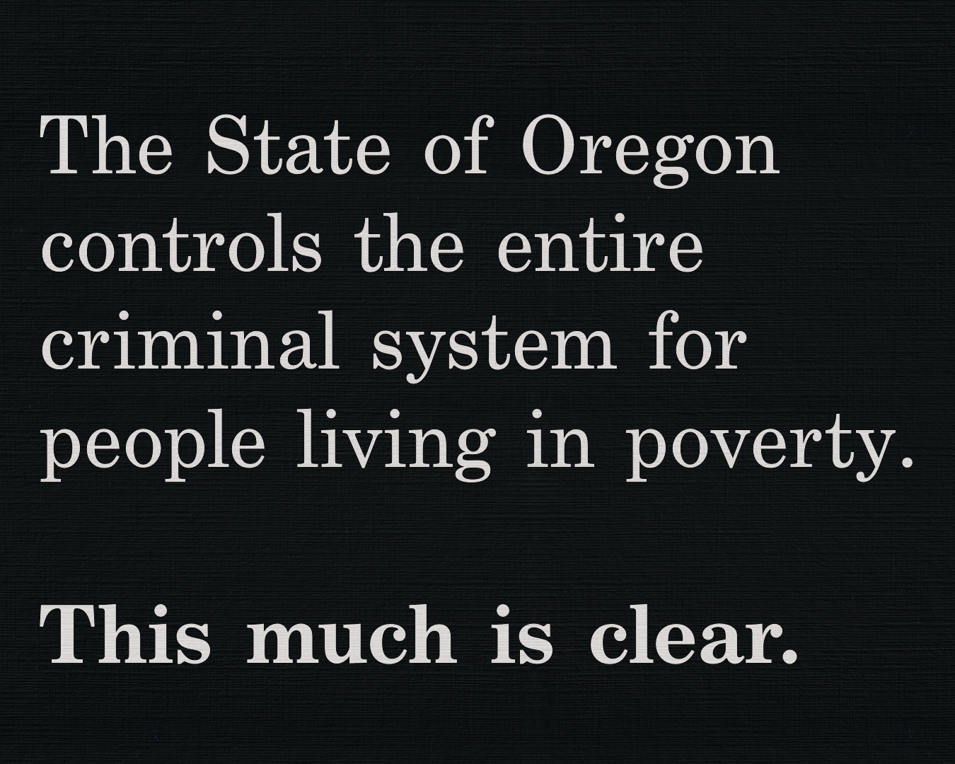 Oregon’s criminal system is operating illegally and causing a lot of harm to some of the most vulnerable people who live here: poor people, youth, people without housing, mentally ill people, people with disabilities, people using substances, and disproportionately Black, Indigenous, and other people of color.